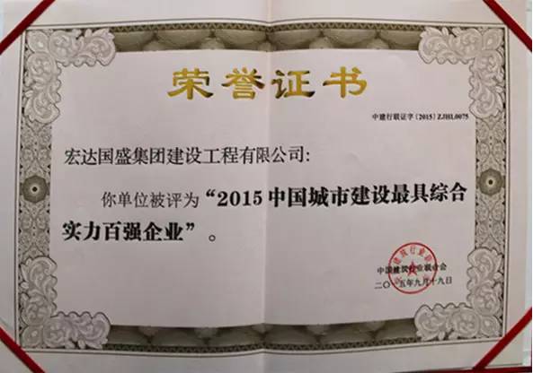 熱烈祝賀宏達國盛集團建設(shè)工程有限公司被評選為“2015中國城市建設(shè)最具綜合實力百強企業(yè)”