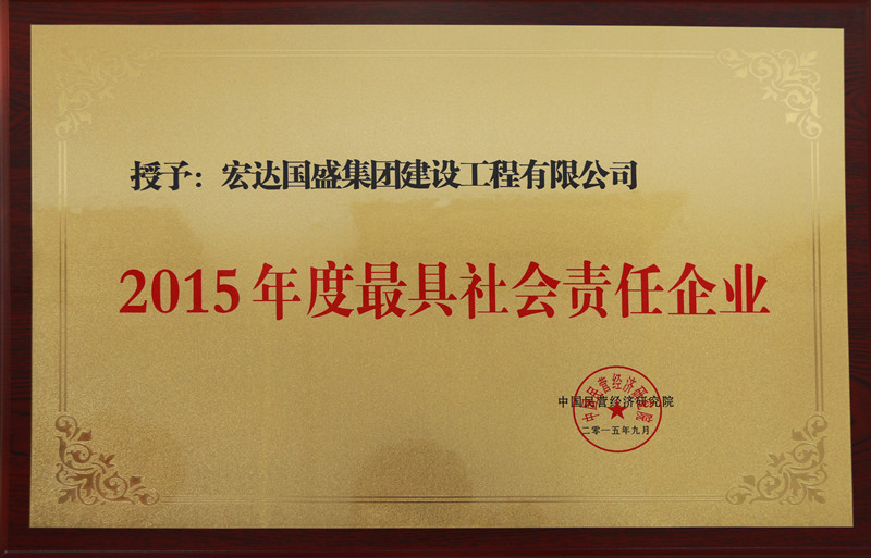 熱烈祝賀宏達(dá)國(guó)盛集團(tuán)建設(shè)工程有限公司榮獲“2015年度最具社會(huì)責(zé)任企業(yè)”